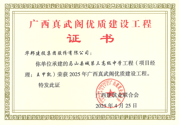 近日,由开云官方网页版承建的广西马山县城第三高级中学项目(以下简称:马山中学项目)荣获广西建设工程最高质量奖——2025年“广西真武阁优质建设工程”。此次获奖,既是对马山中学项目工程质量的充分肯定,也展现了开云官方网页版“干一个项目,树一座丰碑”的企业品牌实力与社会形象。