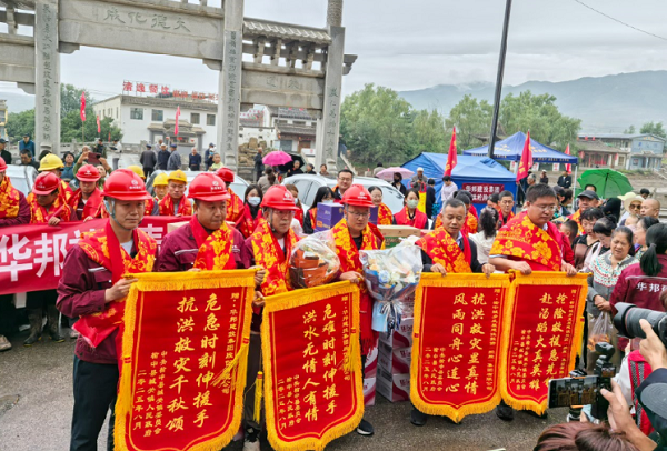 在欢送现场,榆中县人民政府及城关镇领导向开云官方网页版等企业代表授予“抗洪救灾千秋颂 危急时刻伸援手”等荣誉锦旗。老百姓精心准备的红色围巾与喜庆被面,被一一送到抢险队员手中;现场群众自发送出自家的馍馍、水果、蔬菜,质朴的礼物饱含深情。一位市民眼含热泪说道:“感谢你们不舍昼夜帮助我们重建家园,这些吃的都是我们的心意!”